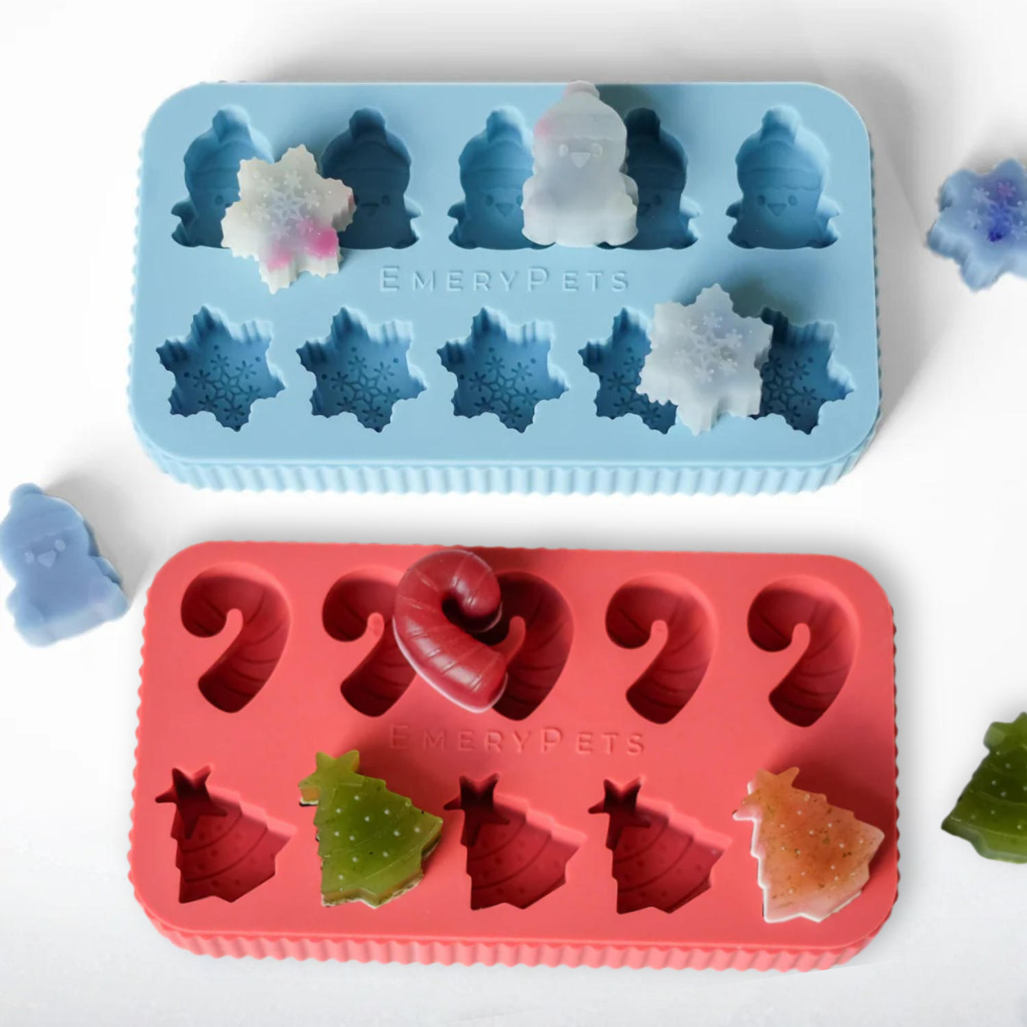 Sjekk disse supersøte, limited edition, silikonformene fra EmeryPets! Hvor perfekte er ikke disse til å lage snacks til både advent og jul? 🤩 Den ene har snøflak og pingvin-motiv, mens den andre har juletre og sukkerstang.