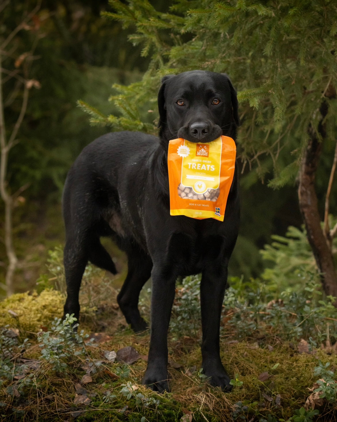 These are freeze-dried, which means that all natural nutrients are maintained in their natural form without being destroyed or degraded, and nothing needs to be added afterwards. This chicken treat is made from Nordic ingredients - completely natural, with lots of flavor! Chicken is a low-fat and easily digestible protein, which is good for sensitive stomachs. Perfect as treats for both dogs and cats!