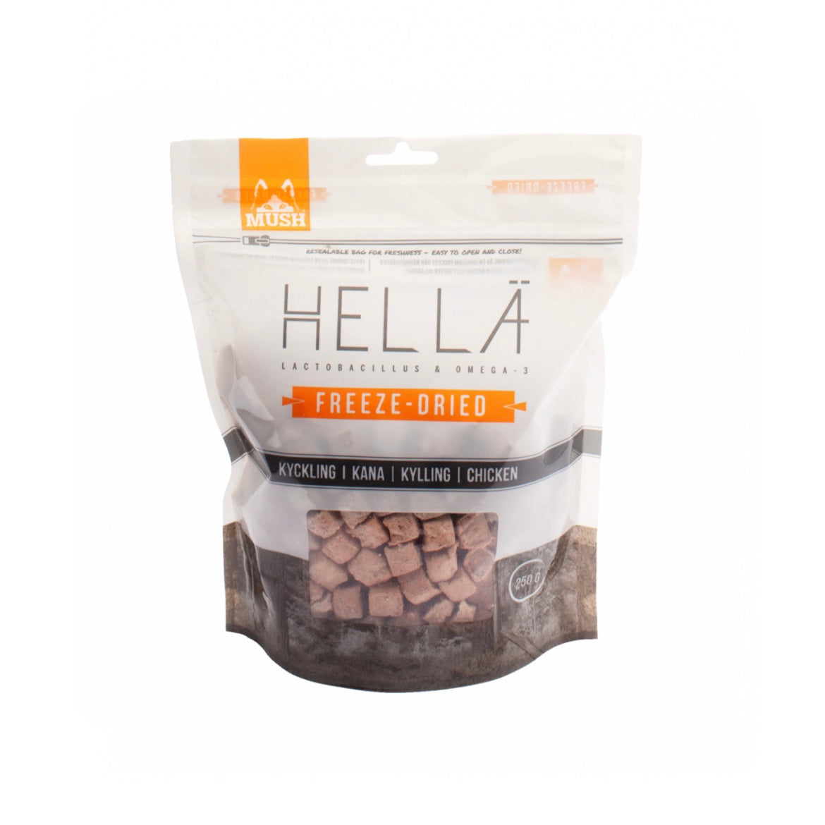 Hellä freeze-dried chicken is ideal for dogs recovering from illness, as well as for rehabilitation and weight control. Hellä chicken is boneless and contains only one protein source, which makes it an excellent option for dogs with allergies or sensitive stomachs.