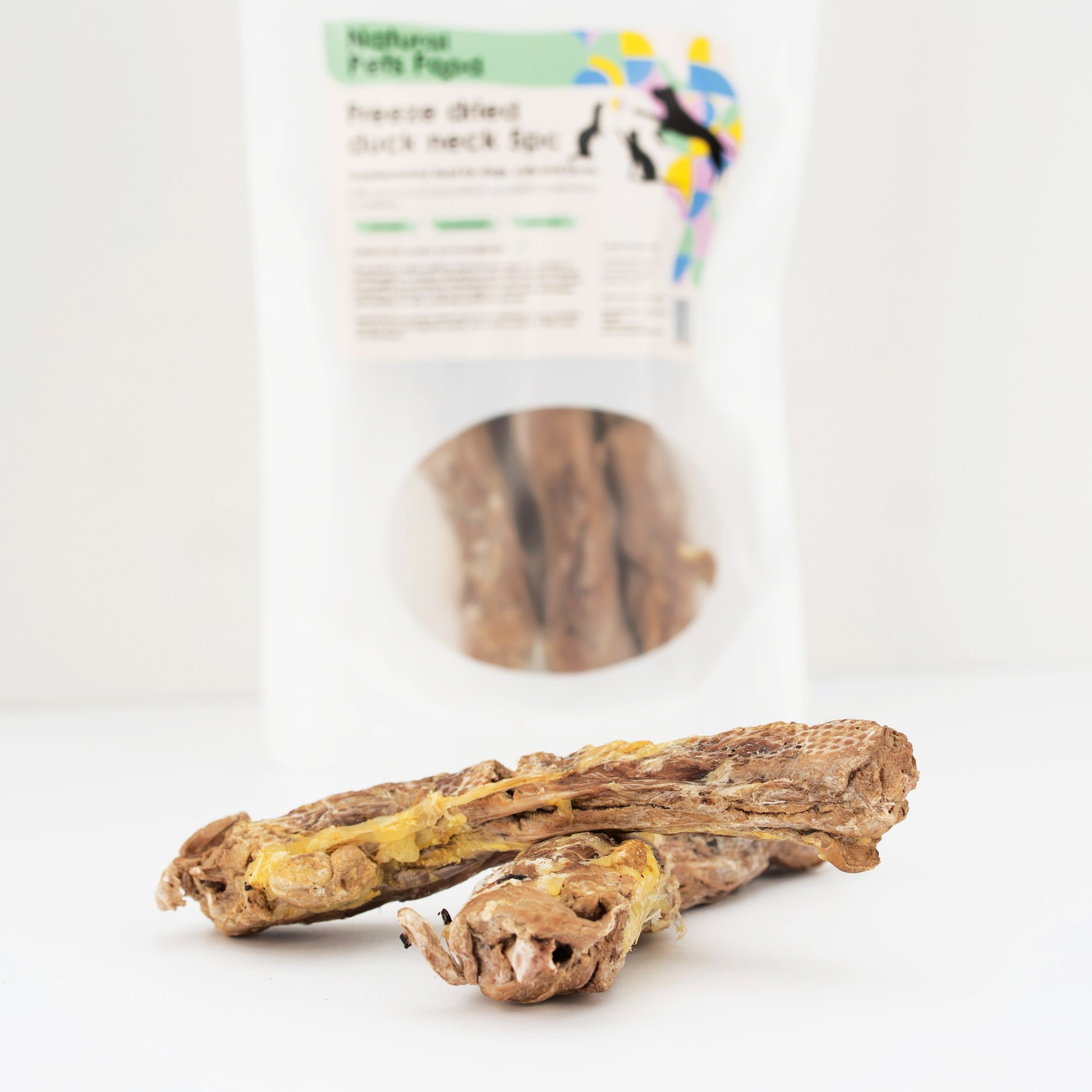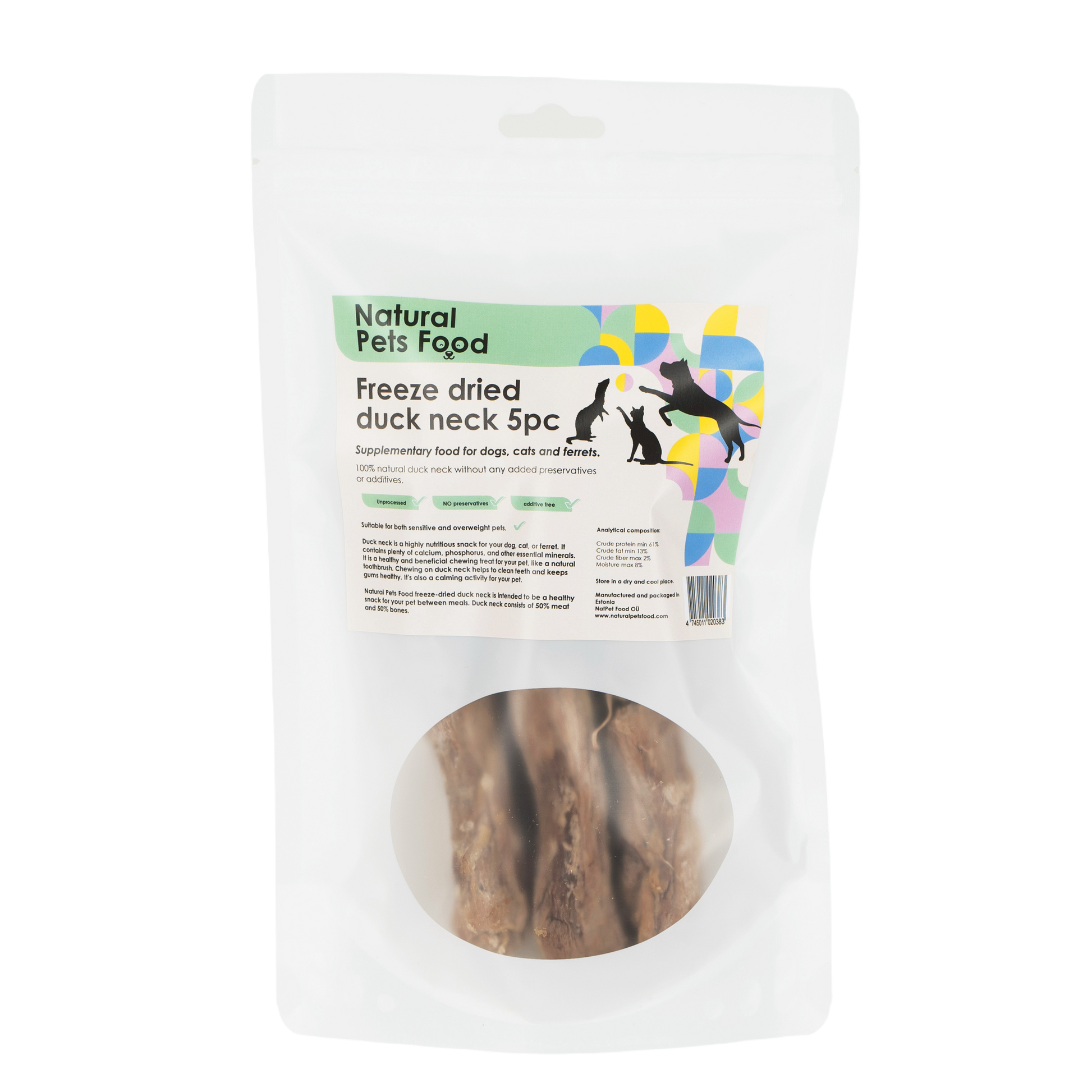 5 freeze-dried duck necks = approx. 720 grams of raw duck neck.