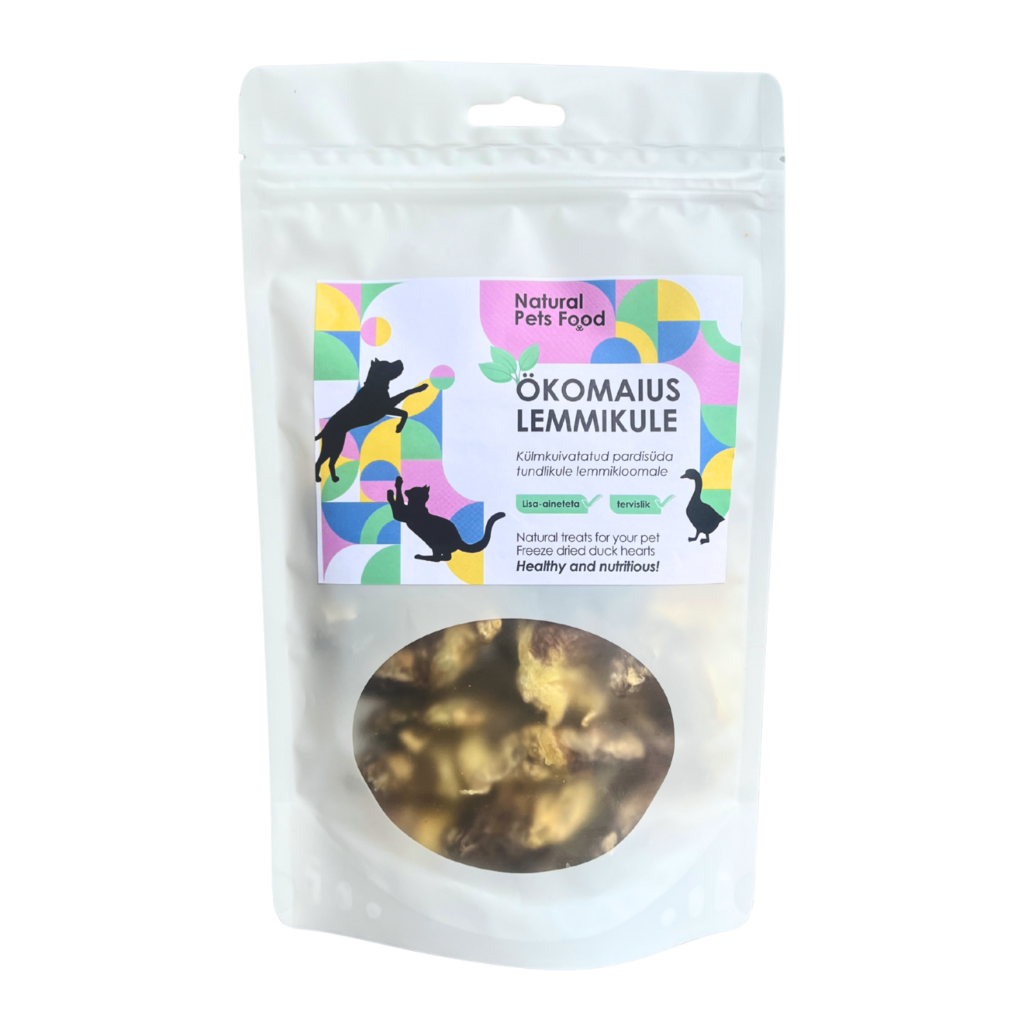 100% natural duck hearts that are freeze-dried. Completely free of additives and preservatives.