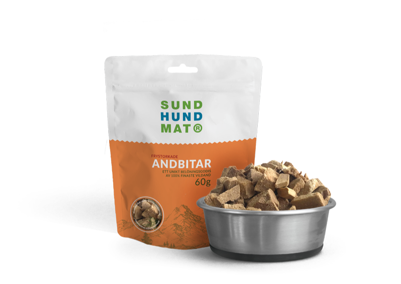 Finely cut fillet pieces of wild duck breast. A healthy treat rich in proteins, vitamins and minerals. The treats are freeze-dried, which means all natural nutrients are maintained in their natural form without being destroyed or degraded, and nothing needs to be added afterwards.