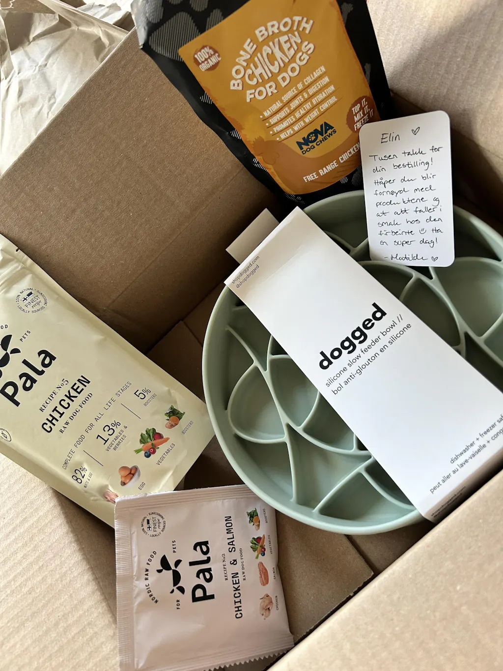 Raskt levering. Fantastisk produkter. Hunden vår elsker maten og liker slowfeed skålen godt.