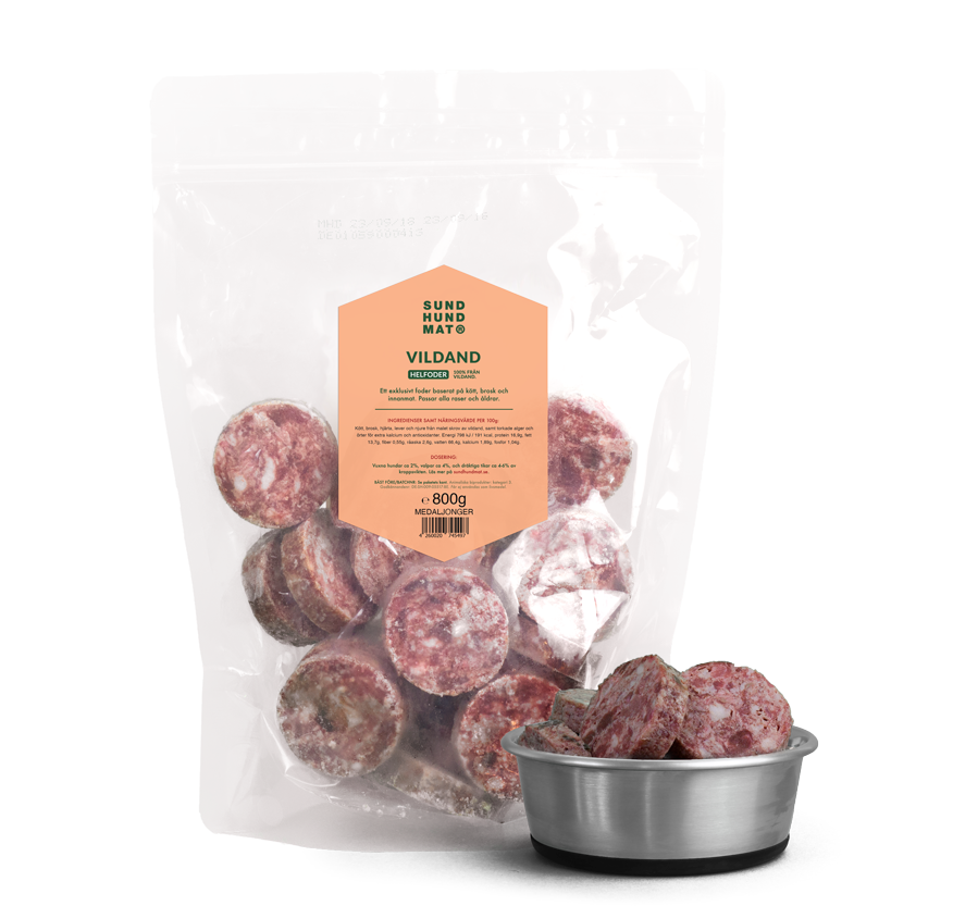 Dette eksklusive fullfôret av villand har en optimal sammensetning av kjøtt, bein og innmat. Det er tilsatt en pulverblanding av helt naturlige vitamin- og mineralkilder fra nøye utvalgte alger og urter.