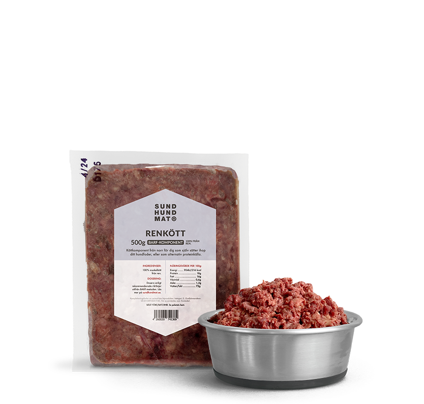 - Som med alt vilt som er blitt drept av jakt, kan det i sjeldne tilfeller, til tross for strenge kontroller og bruk av metalldetektorer, forekomme fragmenter av kuler i produktet. Det anbefales derfor alltid at produktet inspiseres nøye før det gis til hunden.