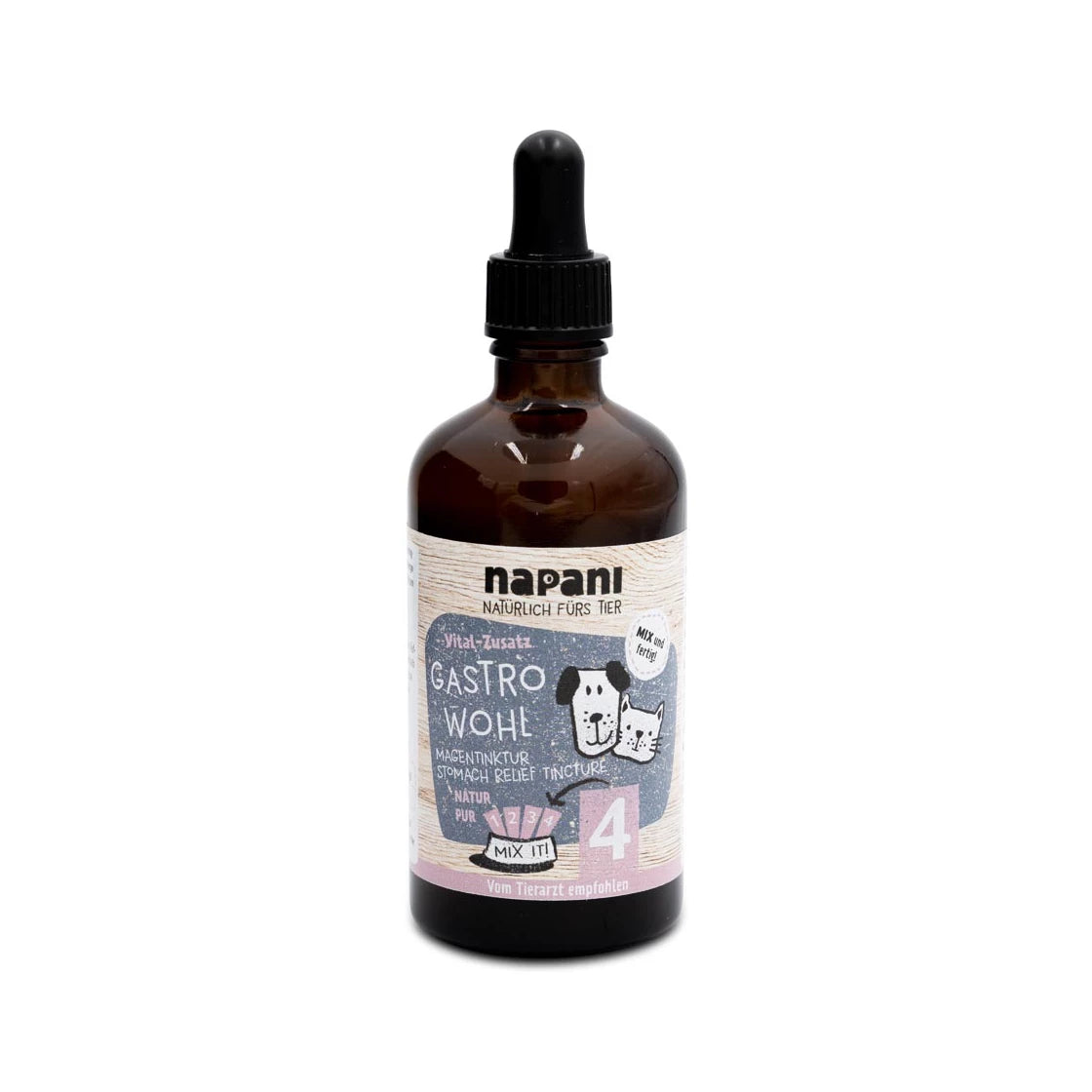 Sammen med deres veterinær har Napani utviklet denne unike blandingen av nøye utvalgte planteekstrakter. De naturlige virkestoffene i tinkturen kan bidra til å støtte normal funksjon i mage- og tarmsystemet, fremme en sunn tarmslimhinne og dermed også bedre opptaket av næringsstoffer.