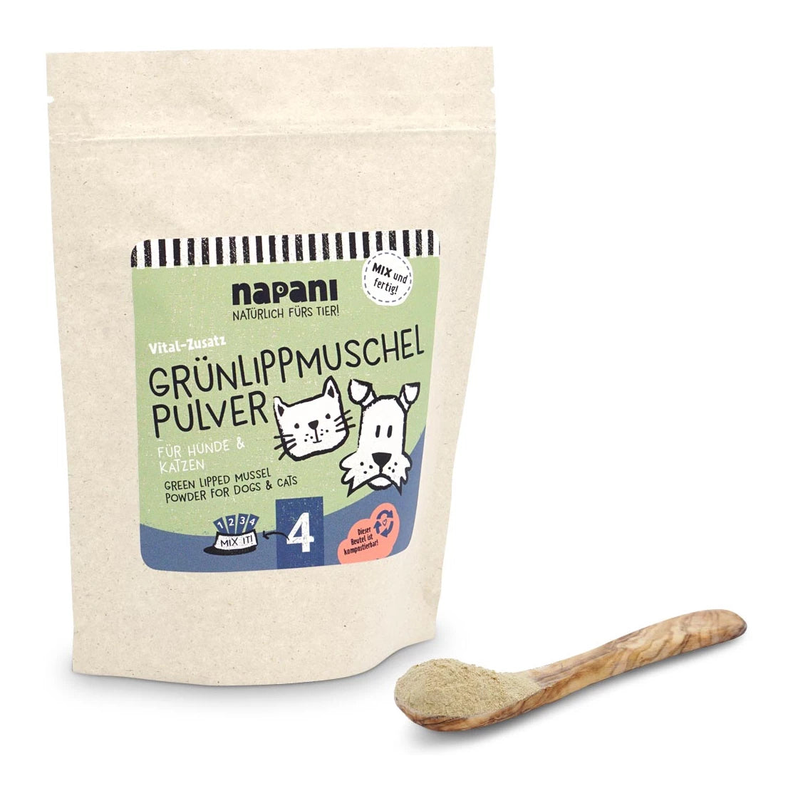 Napani bruker komposterbare poser laget av plantebaserte materialer. Papiret er fremstilt av landbruksavfall og har samme egenskaper som vanlig papir – men uten at ett eneste tre må felles for "PaperWise"! (Plastfri, uten PE-belegg, Keimling-sertifisert.)