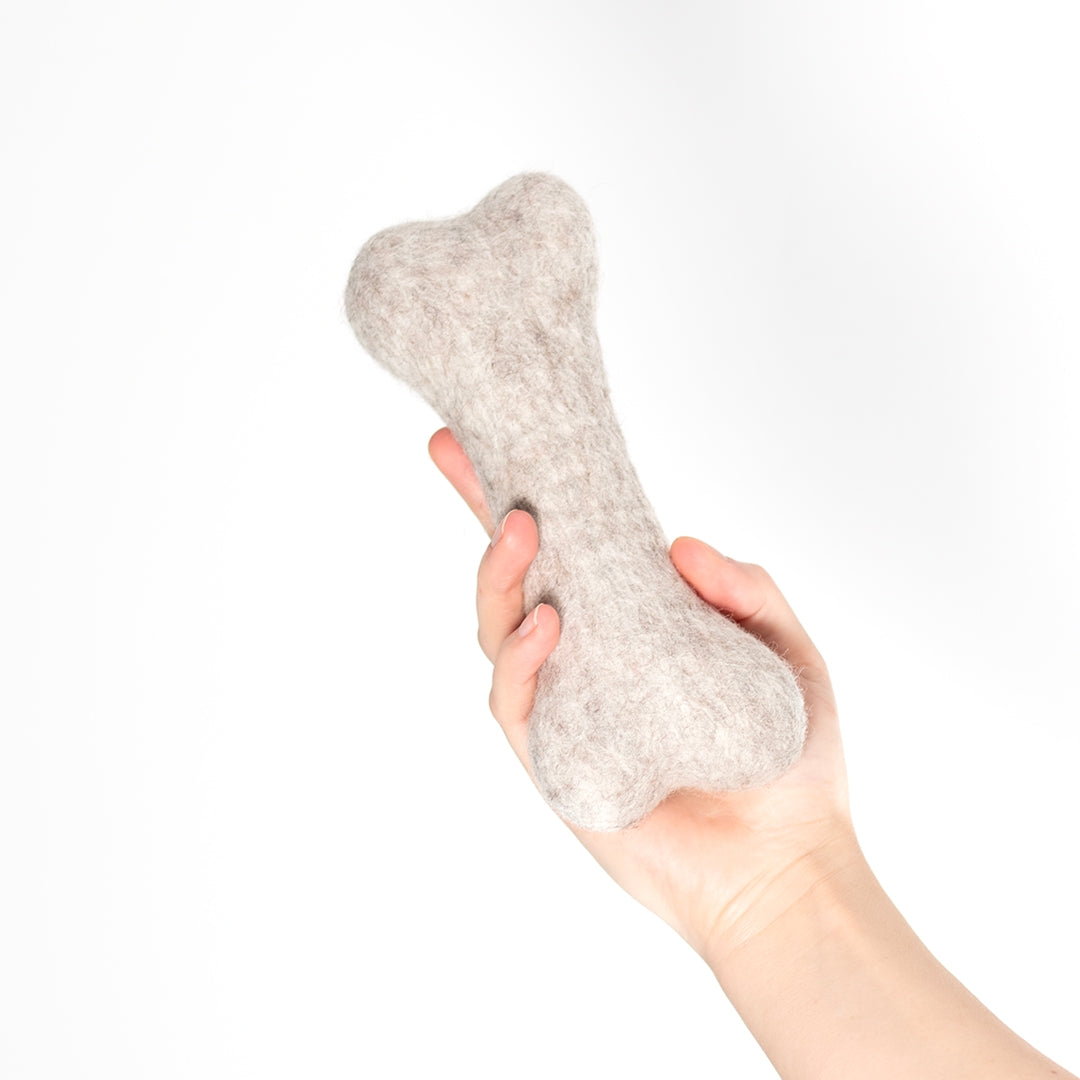 Et bein hører hjemme i enhver matskål! Dette beinet er dog laget av tett tovet, helt naturlig ull. Naturlig ull er uimotståelig for en hunds nese. Denne leken er derfor ideelle for gjemsel- eller apportleker, samt for lett tygging og bæring.