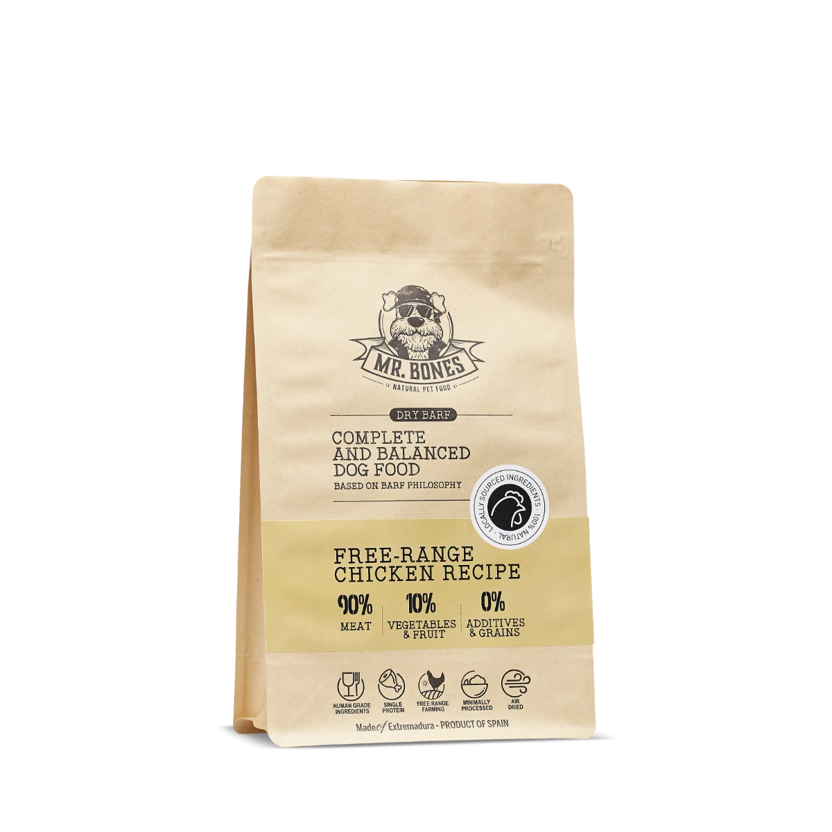 Dry BARF av frittgående kylling er et komplett lufttørket hundefôr basert på BARF-filosofien: