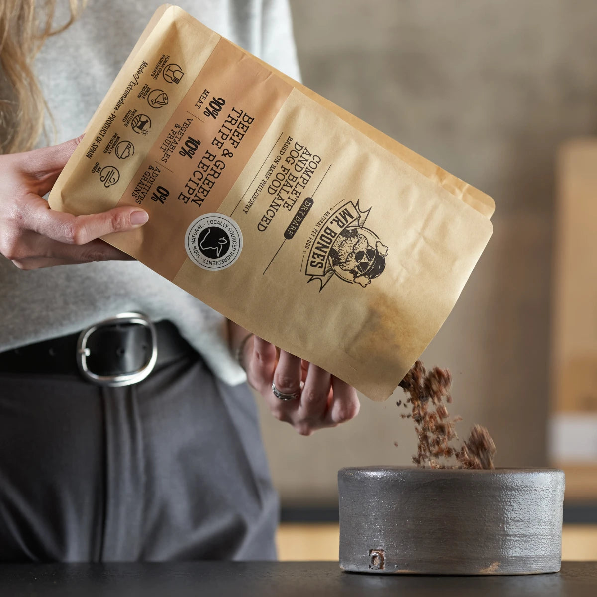 90% kjøtt | 10% frukt, grønnsaker og urter | 0% tilsetningsstoffer eller konserveringsmidler