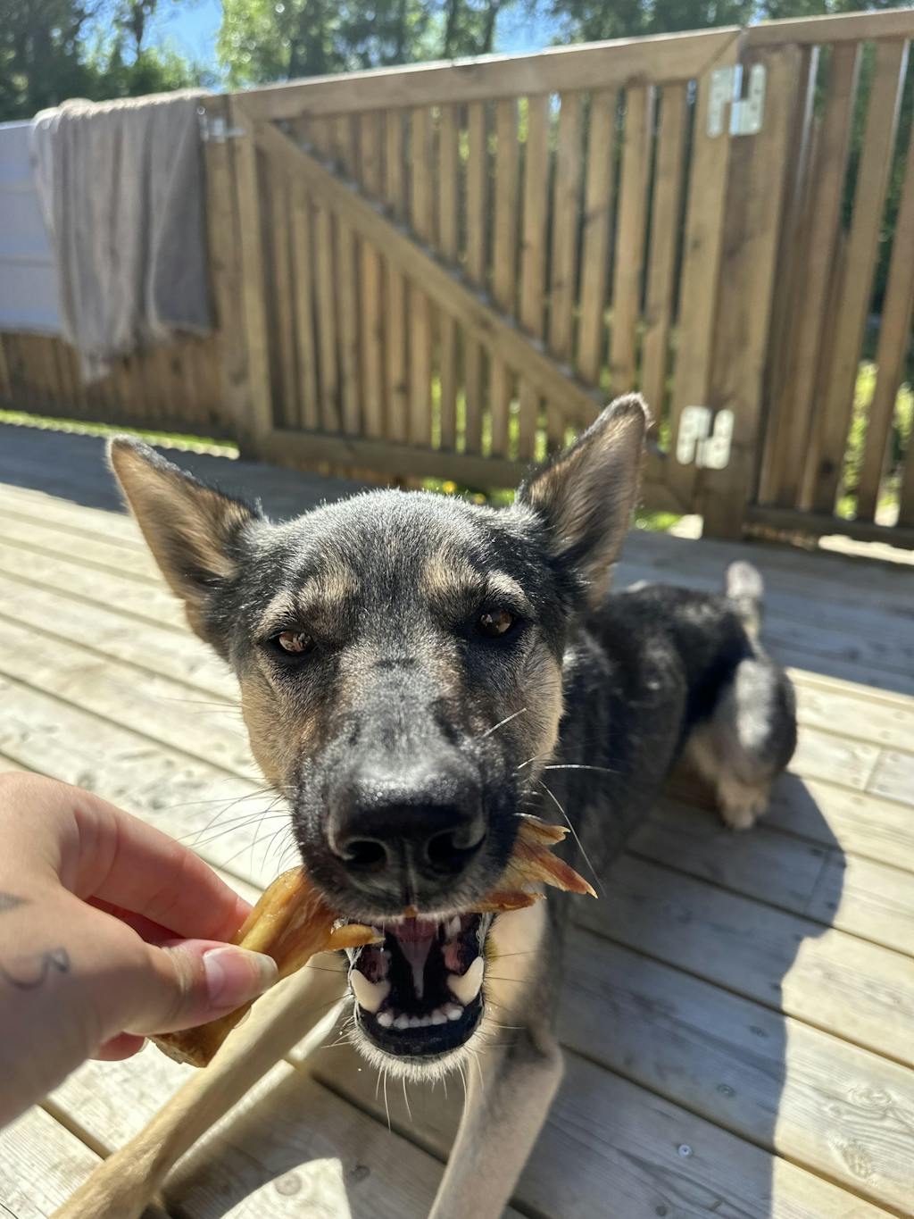 En stor favoritt hos vår lille hund (5kg), perfekt som tygg! Disse har vi alltid på lager