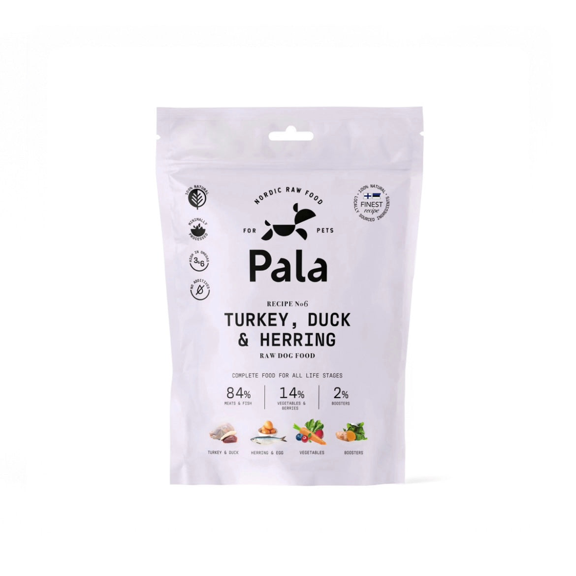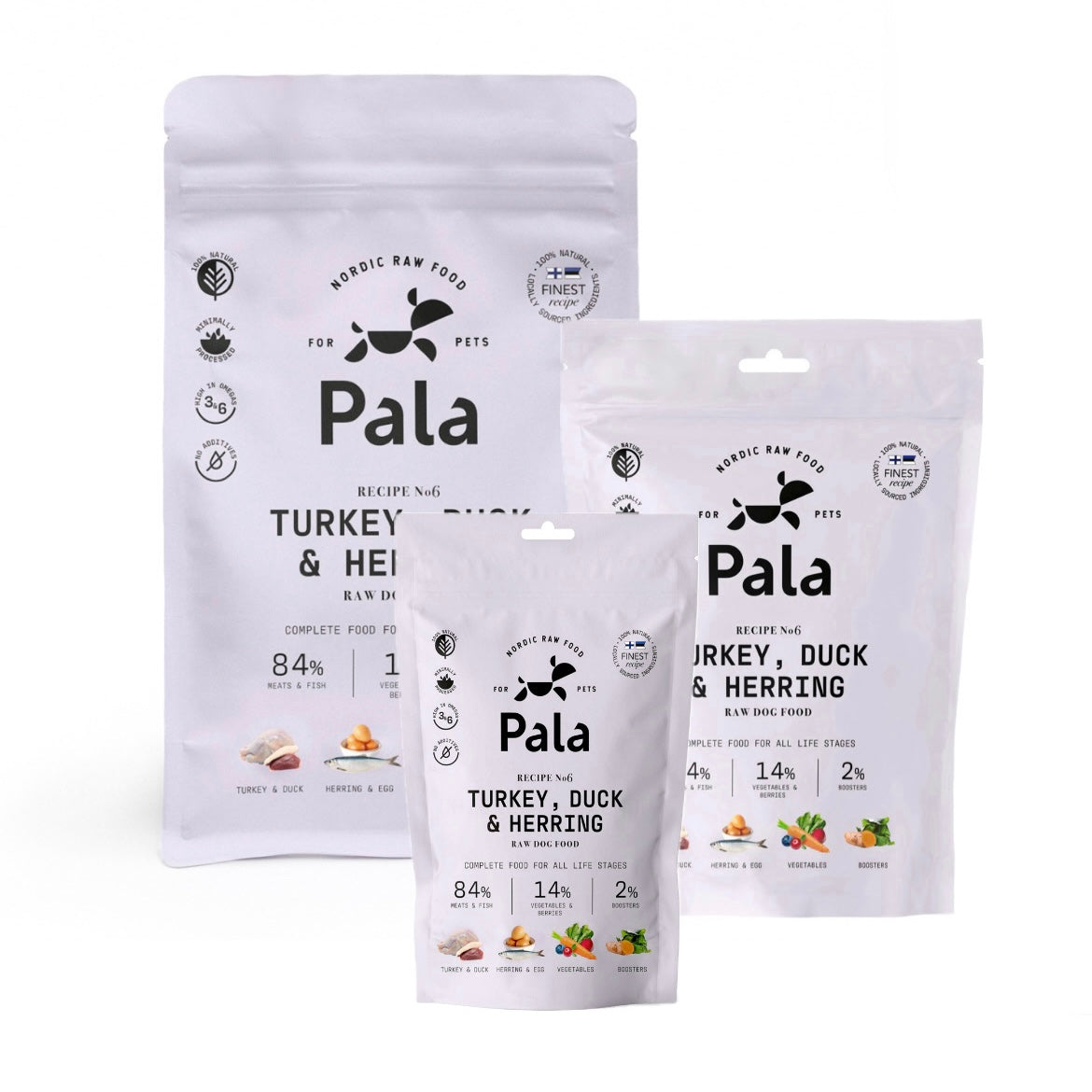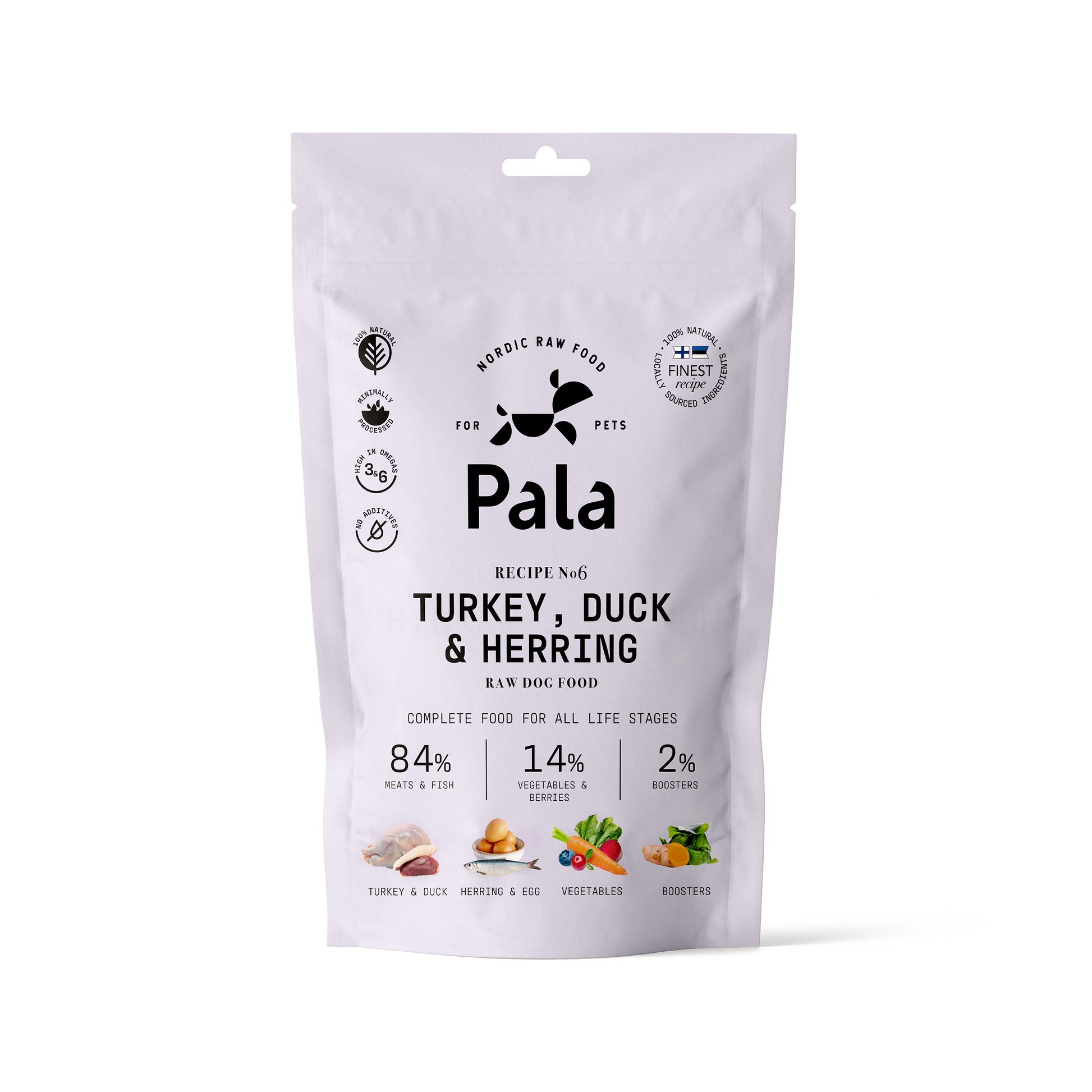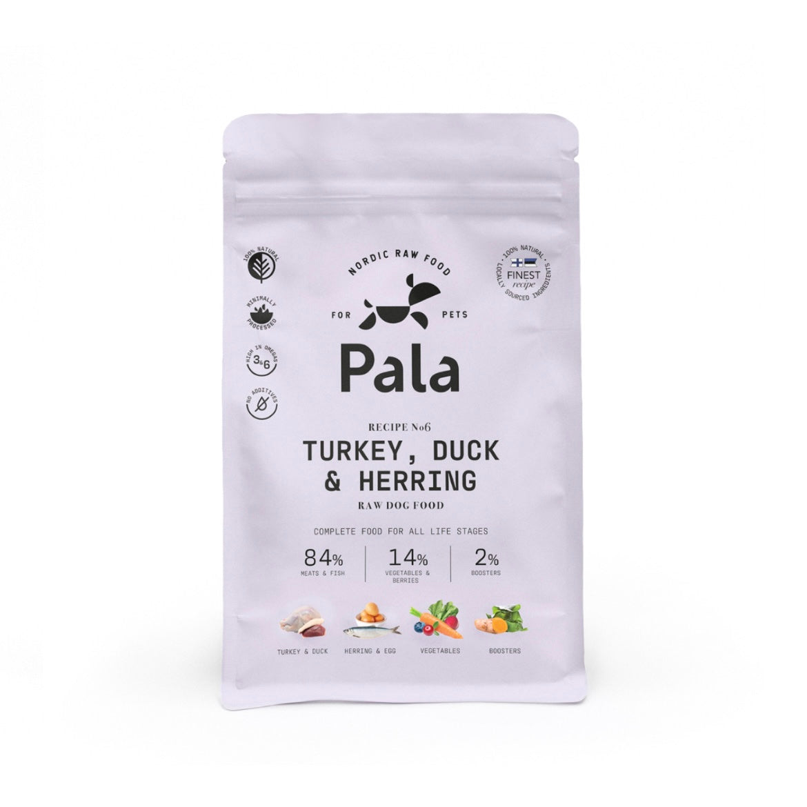 Palas komplette og balanserte oppskrifter inneholder minst 82% lett fordøyelig rått kjøtt og fisk, 13-14% grønnsaker og bær som er rike på antioksidanter og fiber, og 3-4% helt naturlige boostere. Fôret produseres i små partier for å bevare de fantastiske kvalitetene til ingrediensene uten at næring går tapt!