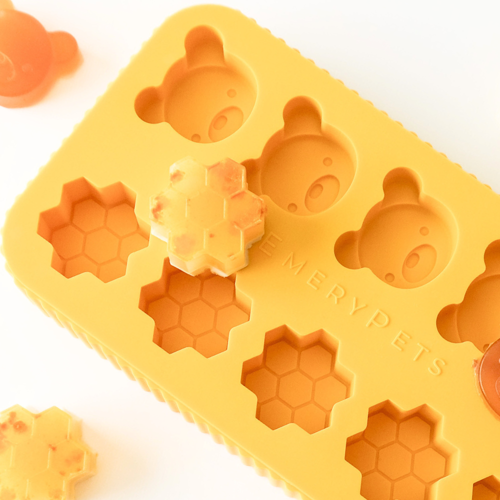 EmeryPets silikonformer er designet med ekstra tykke yttervegger, for bedre stabilitet, og mindre sannsynlighet for søl. Dette gjør det enkelt å bære formen med en hånd fra benk til fryser! Designet gjør det også enkelt å stable flere former oppå hverandre.