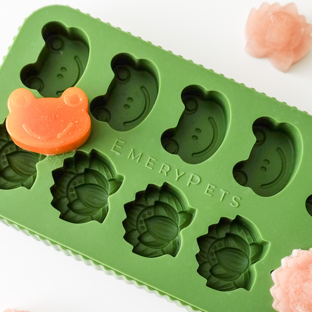 EmeryPets silikonformer er designet med ekstra tykke yttervegger, for bedre stabilitet, og mindre sannsynlighet for søl. Dette gjør det enkelt å bære formen med en hånd fra benk til fryser! Designet gjør det også enkelt å stable flere former oppå hverandre.