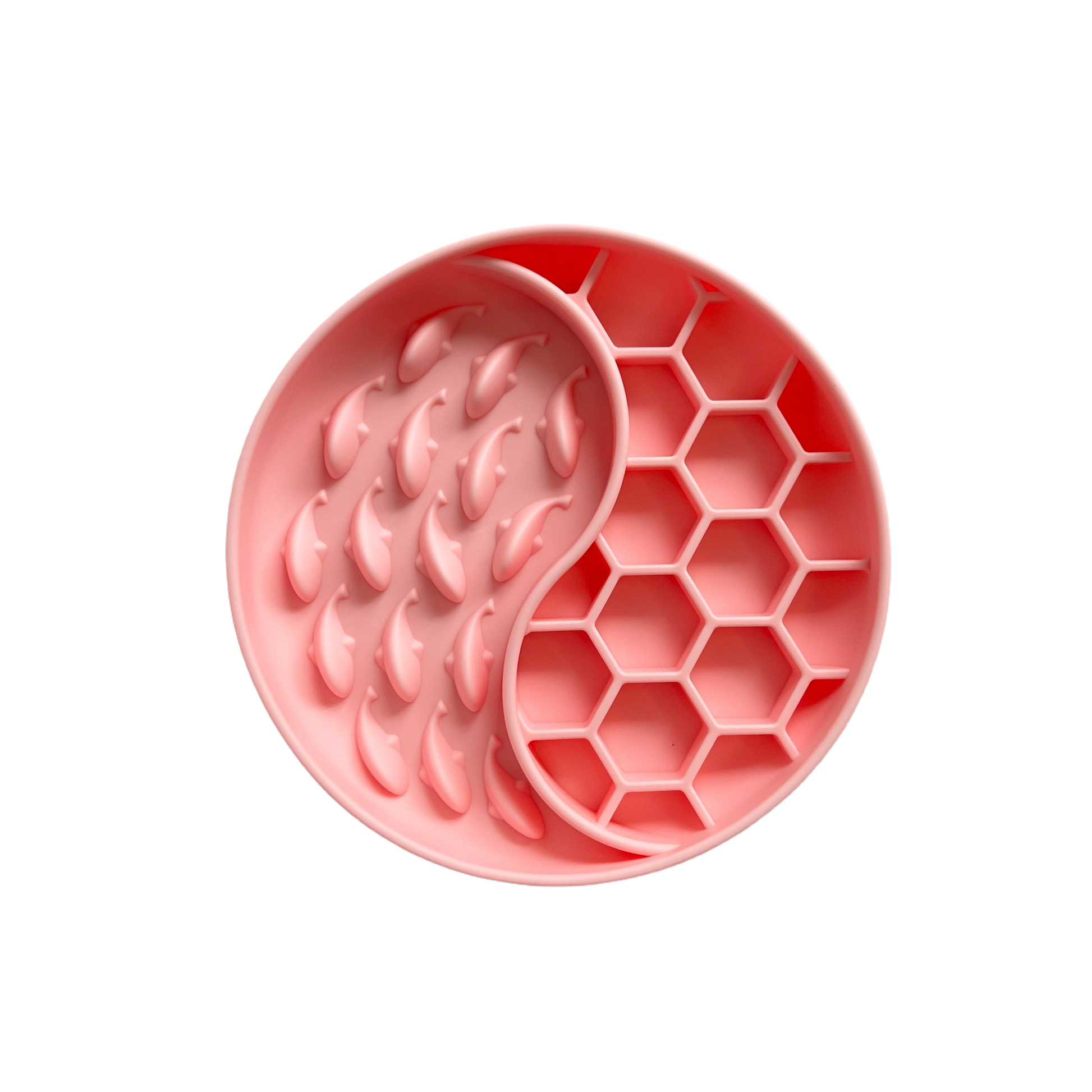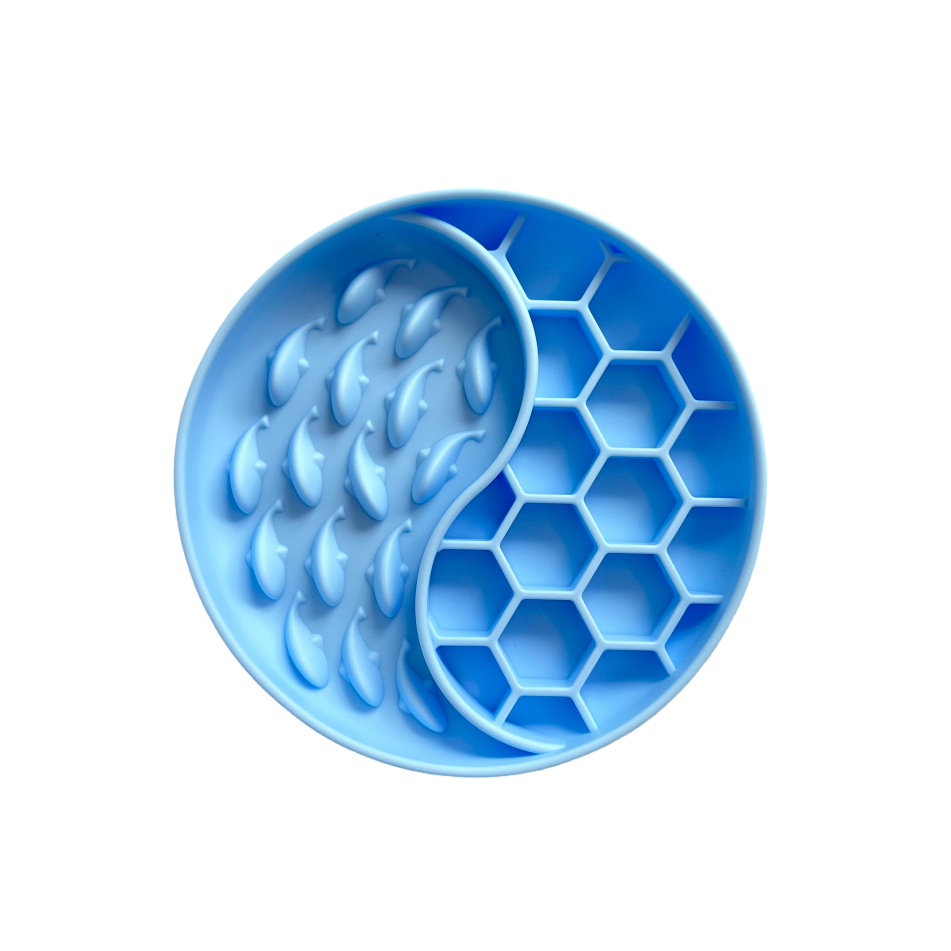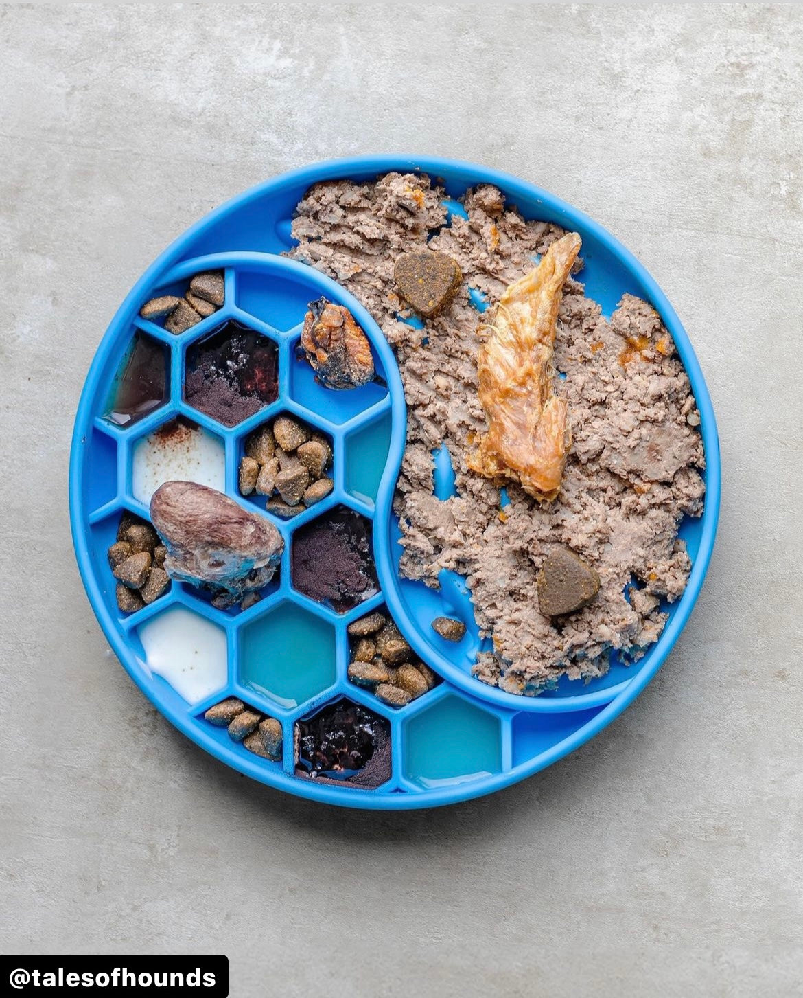 Denne slowfeederen har en stor sugekopp under, som gjør at den sitter godt fast på diverse overflater uten at den beveger på seg. Spre hundens tørr-, våt- eller råfôr og topp det med sunne og næringsrike toppers som grønnsaker, gresskarpulver, grønnleppemusling, osv. og f.eks. frys det, så har du et måltid hunden må god bruke tid på!