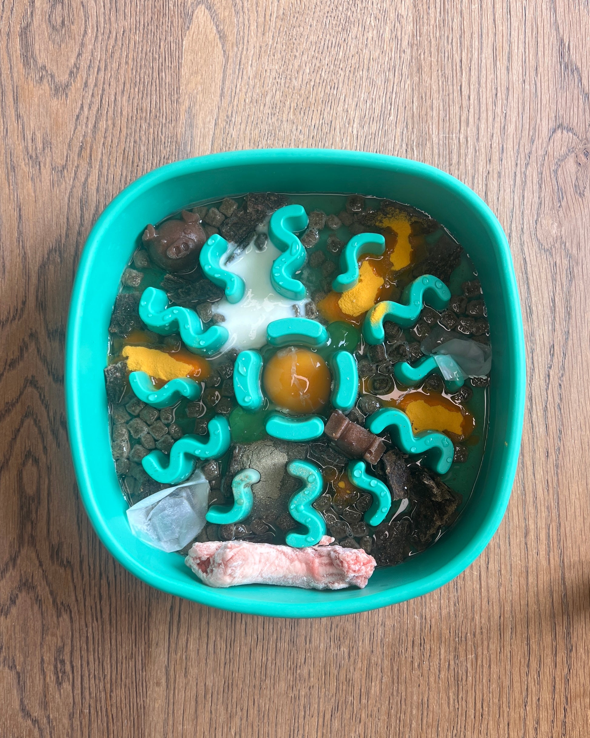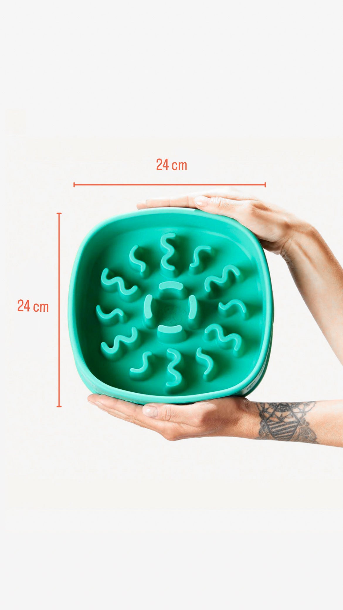 Dette er den største slowfeederen vi har, og som finnes på det norske markedet. Den er perfekt til større hunder som får større måltider, men den kan selvfølgelig brukes av hunder i alle størrelser! Spre hundens tørr-, våt- eller råfôr og topp det med sunne og næringsrike toppers som grønnsaker, gresskarpulver, grønnleppemusling, osv. og f.eks. frys det, så har du et måltid hunden må god bruke tid på!