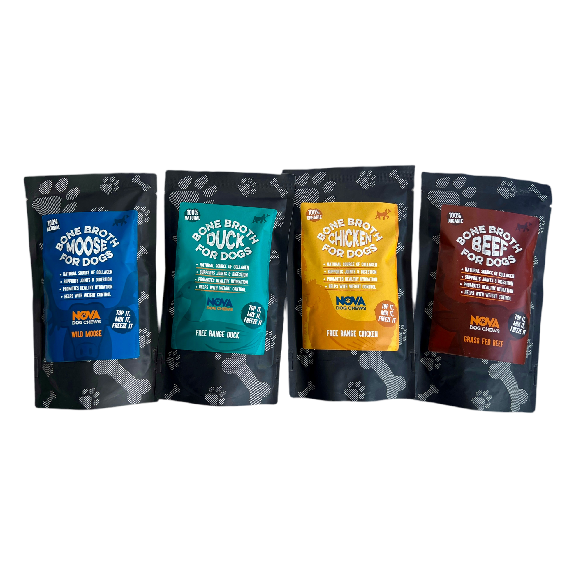 BEINKRAFT - Så utrolig mange fordeler, og ikke minst, en appetittvekker. Hvor frustrerende er det ikke med en valp som ikke vil spise? Jeg kjenner iallfall igjen den følelsen! Andre fordeler med beinkraft; det er antiinflammatorisk, styrker ledd og immunforsvaret, og i tillegg hjelper fordøyelsen. (PS: Beinkraft er også et bra tilskudd å gi til drektige eller ammende tisper hvis du har det i hus.) Vi har valgt å legge ved 2 x beinkraften fra Nova Dog i valgfri smak, da vi syntes de er helt super og veldig enkel å bruke!