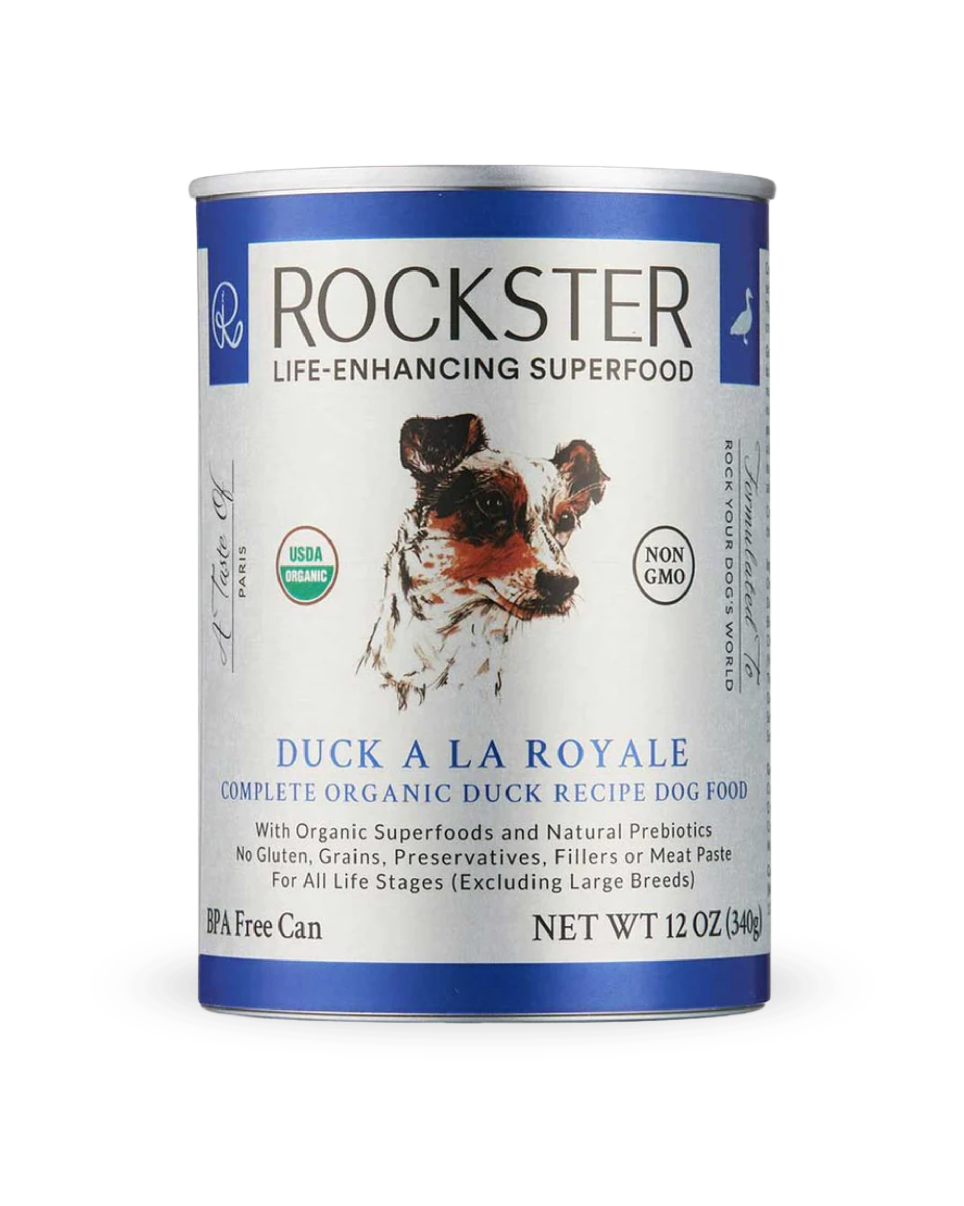 Ingredienser: 80,5% økologisk and (85% muskelkjøtt, 5% hjerte, 5% krås, 5% lever), 4% økologisk squash, 4% økologisk mango, 4% økologisk gresskar, 4% økologiske blåbær, 2% økologisk persille, 1% lakseolje, 0.5% økologisk fermentert jordskokk konsentrat, kaliumklorid, magnesiumoksid, kolinklorid, kalsiumpantotenat (Vitamin B5), sinksulfat, niacin (Vitamin B3), vitamin E-tilskudd, tiaminmononitrat (Vitamin B1), vitamin B6-tilskudd, manganoksid, vitamin A-tilskudd, kalsiumjodat, folsyre (Vitamin B9), selenberiket gjær, vitamin B12-tilskudd, biotin (Vitamin B7), vitamin D3-tilskudd.